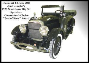 For the second year in a row, a Studebaker was chosen as “Best of Show” (Committee’s Choice); Jim and Nancy Heinsohn’s 1923 Studebaker Big Six Speedster. Additional awards for Studebaker were Ron and Nadia Johnson’s 1956 Golden Hawk – “Best of Class” – Post-War